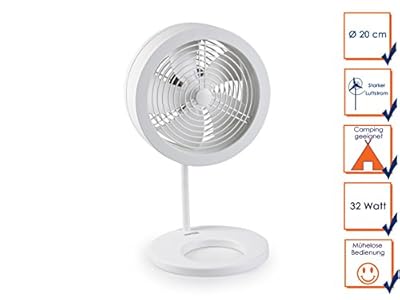 Power-tischventilator mit 20 cm durchmesser. Toller ventilator, sieht edel aus mit seinem designfuß und läuft angenehm leise. Sehr gute verarbeitung und ist sein geld schon wert. Verstellbar ist er zwar nicht aber das ist auch nicht notwendig, da er es schafft in einem erstaunlichen radius kühle luft zu blasen. Ich bin stolz ihn zu besitzen.