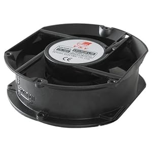 Hochleistungs Lüfter/ Ventilator 220 - 240 Volt AC Maße 172x150x50 mm. Technische Daten: Betriebsspannung 220-240Volt/50-60 Hz, Leistungs-aufnahme ca. 0,24/0,2 Ampere (22 Watt), 2100 U/min, ca. 310 cbm/Std. 5 Flügel. Bohrloch Abstand: Quer: 135mm, Längs: 162mm. Ausführung: Schwarz lackiertes Metall.